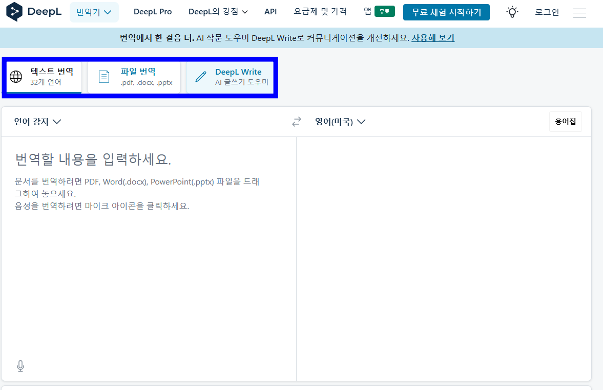 DeepL 웹사이트에서 사용하는 방법을 알아보았습니다.